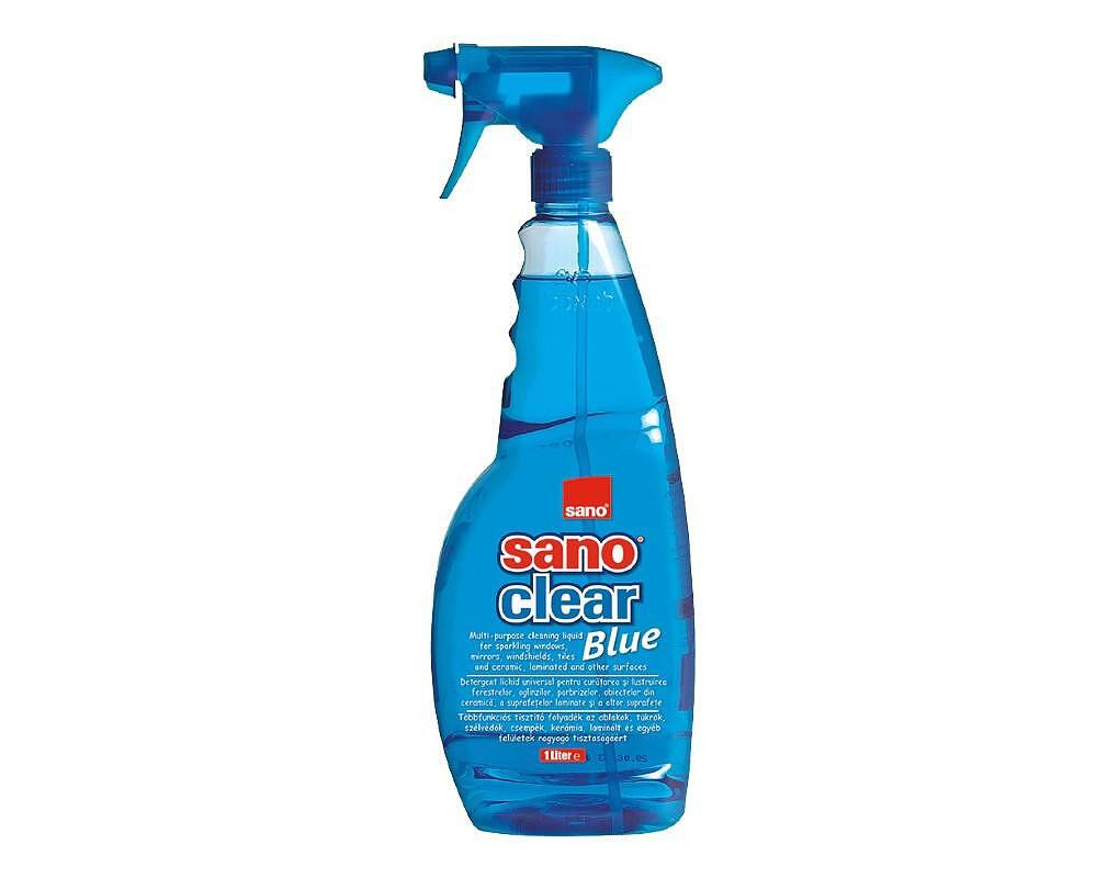 Сано Клиър "Блу" - Почиства и придава блясък на прозорци, огледала, керамика, порцелан хром, пластмаса и други видове повърхности.
