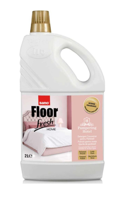 Сано Фреш "Памперинг Хотел" - Препарат, подходящ за всички видове подове: керамика, гранит, порцелан, мрамор и др. Обогатен със специални аромати с дълготраен освежаващ ефект. 4 в 1: почиства, полира, защитава всички видове подове.