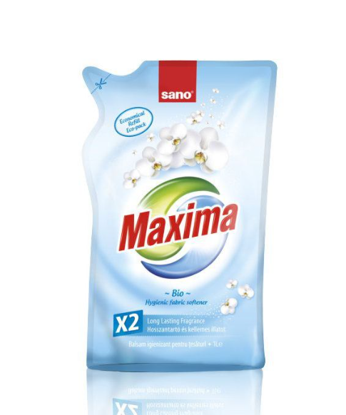 Сано "Максима Био“ - антибактериален, концентриран и икономичен омекотител, който омекотява дрехите, предпазва ги и улеснява гладенето. Подходящ за бебешки и детски дрехи, както и за хора с чувствителна кожа. Дерматологично тестван.