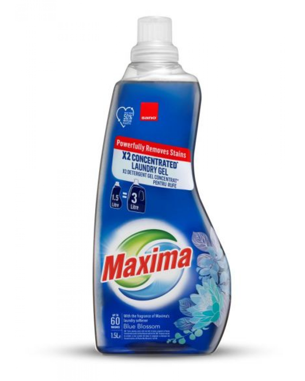 Сано Максима "Блу блосъм" - концентриран гел за пране, подходящ за всички видове пране, включително и най-деликатните тъкани. Ефикасен дори при изпиране със студена вода или при ниски температури.