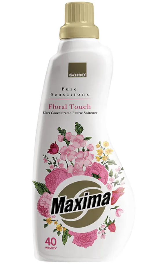 Сано Максима "Цветно докосване" - Ултраконцентриран омекотител за пране, придаващ дълготраен и уникален аромат на тъканите. Съдържа естествени екстракти от черешов цвят и нотка на бял муск.Подходящ за всички видове тъкани, включително и най-деликатните.