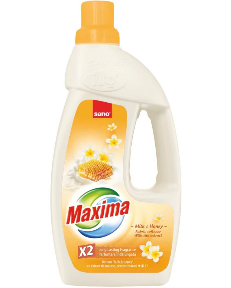 Сано Максима "Мед и мляко" - е омекотител с уникален, дълготраен аромат на мед и мляко, който оставя прането меко и с приятен аромат. Предотвратява статичното електричество, улеснява гладенето и унищожава бактериите и микробите. Предпазва тъканите и е подходящ за чувствителна кожа.