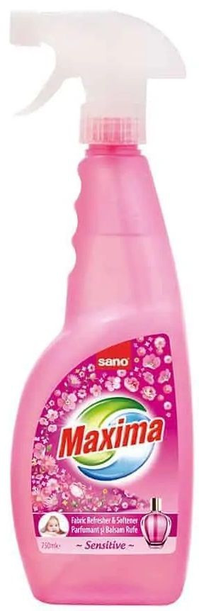 Сано Максима "Пинк" - спрей омекотител ефективно и икономично омекотява и ароматизира прането. Тъканите стават меки и лесни за гладене. Придава страхотен свеж аромат на дрехите, с много дълготраен ефект. Омекотителят се напръсква директно върху дрехите към края на цикъла на сушене. Може също така да се напръска директно върху прибраните в шкафа дрехи. Не оставя петна върху тъканите.