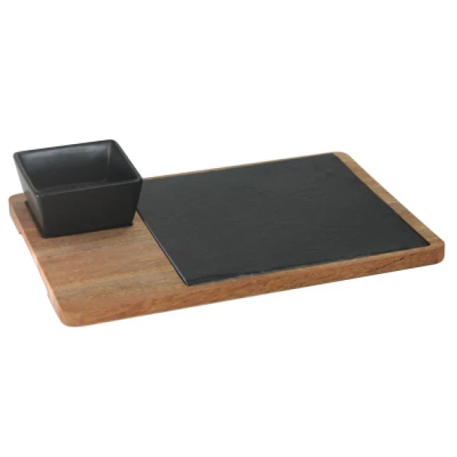 Сет за сервиране с каменна плоча 30х22см (плоча 20х20см+керамична чинийка 9х9см ) HORECANO-(1290SJ4960)