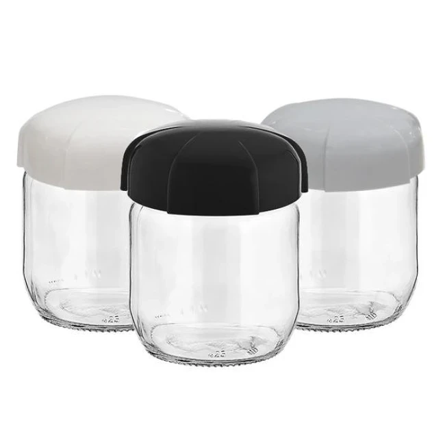 Стъклен буркан без декор 425см RHEA (ЧЕРЕН,БЯЛ или СИВ капак) M-131313 - Horecano