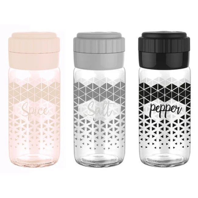 Стъклена солница с декор и пластмасово капаче 244мл M-131032-HIBRIT - Horecano