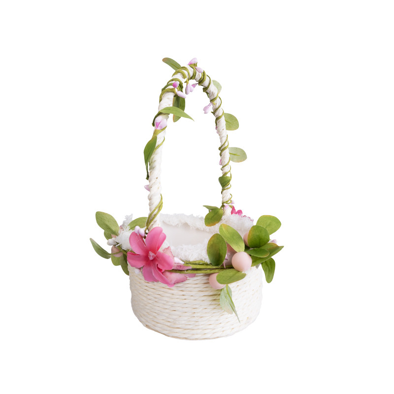 Добавете нежност и пролетно настроение във вашия дом с тази великденска кошница с цветя. Декоративната кошничка е изработена в естествена визия, с деликатни зелени листа, розови акценти и елегантна дръжка – перфектно допълнение за празничната трапеза, входното пространство или като част от великденската декорация у дома. Съчетавайки свежи пролетни цветове и фин дизайн, тази великденска декоративна кошница е чудесен избор както за украса, така и за тематичен подарък.